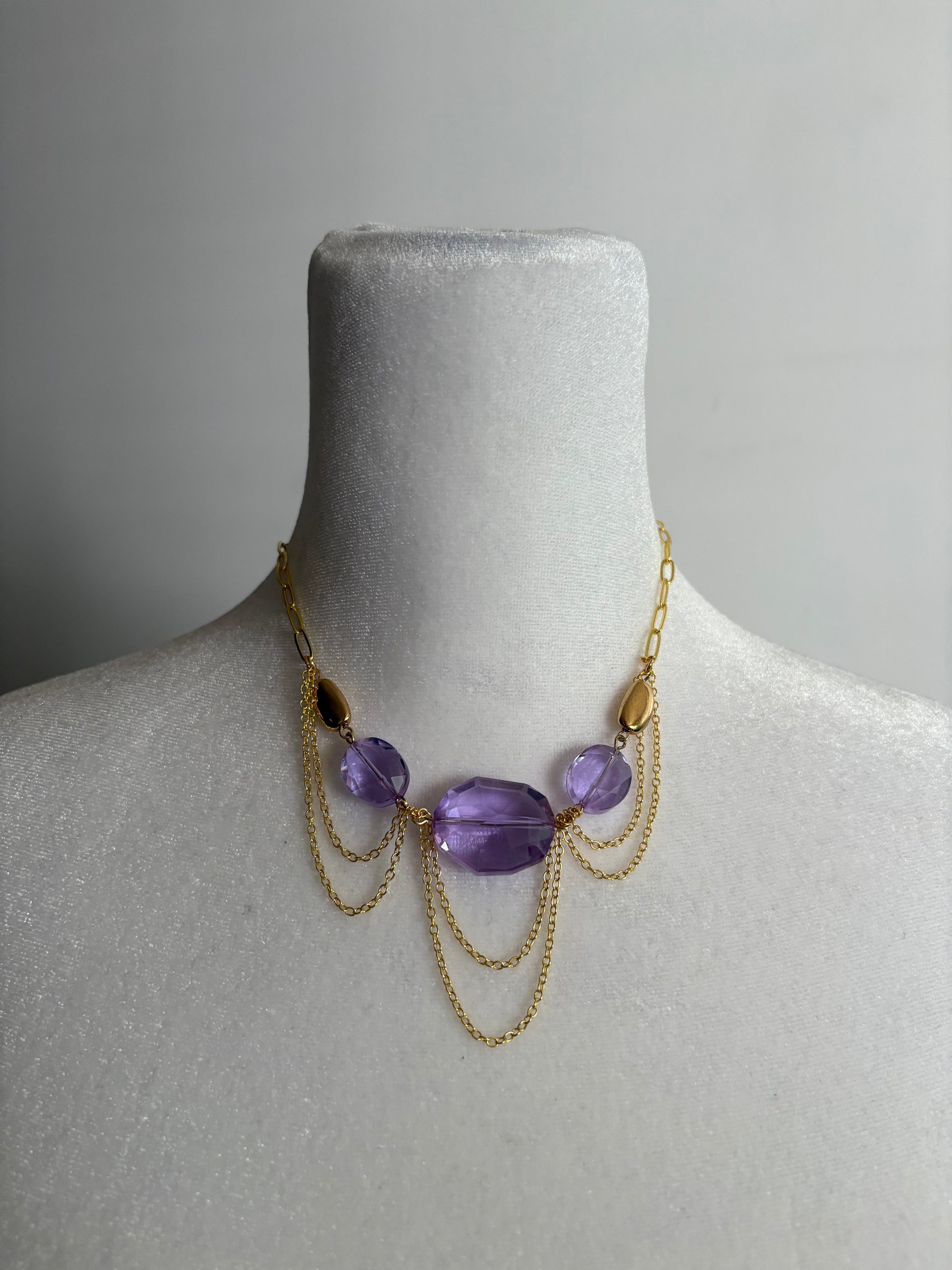 Materials: Gold-Filled Metal, Vintage Purple Crystals, Lobster Clasp